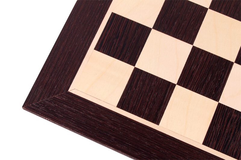 This 44x44cm veneer chessboard has been crafted from sycamore and wenge. This fine chess board has a square size of 45mm and it fits to our smaller and medium chessmen with a King height of 80 and 90mm. This board is available in dark (wenge) border and without alphanumeric notation only.